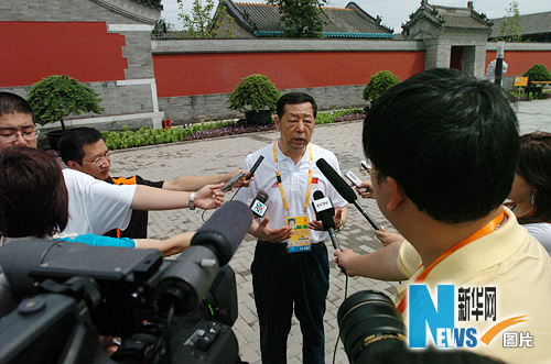 中國體育代表團副團長崔大林接受記者采訪。新華網(wǎng) 陳競超 攝