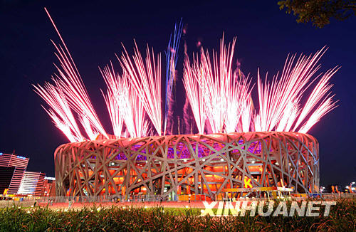 8月2日,2008北京奧運會開幕式第二次彩排在國家體育場——“鳥巢”舉行,并進行焰火調(diào)試。 新華社記者 李鋼 攝