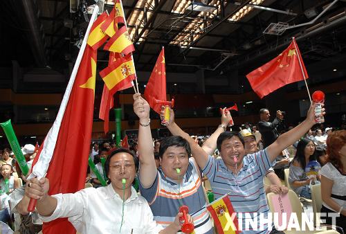 。溉,西班牙首都馬德里的馬加里尼奧體育館一派節(jié)日氣氛:龍騰獅躍,鑼鼓喧天,歡聲笑語,紅旗招展。西班牙華僑華人、留學(xué)生和西班牙朋友在這里歡聚一堂,熱烈慶祝北京奧運會開幕。開幕式美輪美奐的表演激發(fā)了大家更大的熱情,人們揮舞著中西兩國國旗,隨著開幕式的進(jìn)程,歡呼聲此起彼伏,高潮迭起。開幕式結(jié)束,五彩紙屑漫天飛舞,大家舉杯相慶,共祝北京奧運會圓滿成功。
