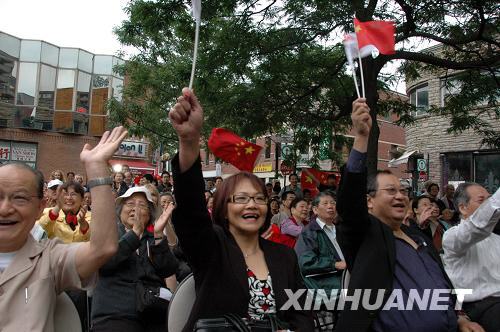 加拿大4000多名華僑華人和當(dāng)?shù)赜^眾8日在多倫多最大的劇院觀看了北京奧運會開幕式電視實況轉(zhuǎn)播。轉(zhuǎn)播過程中,劇院里“加油,中國!加油,加拿大!”的呼喊一陣接著一陣,氣氛比過春節(jié)還熱鬧。“圣火點燃八月天,五環(huán)夢里百余年。風(fēng)騷今日炎黃領(lǐng),攜手萬邦史無前!边@是渥太華加華文化基金會主席王玳瑜觀看奧運會開幕式后所做的一首七絕。王玳瑜的詩句道出了加拿大華僑華人歡慶北京奧運會正式開幕的激動心情。