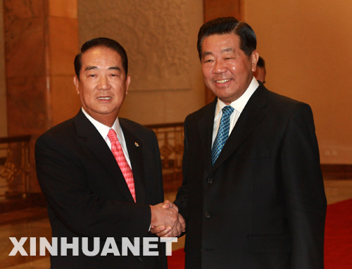新華網(wǎng)北京8月11日電 中共中央政治局常委、全國政協(xié)主席賈慶林11日在人民大會(huì)堂會(huì)見了親民黨主席宋楚瑜一行。