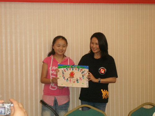 會(huì)上,受助學(xué)生代表張玉婷向高金素梅一行宣讀了感謝信。隨后,高金素梅女士與來自北川的20名受助羌族學(xué)生一一見面,并和學(xué)生家長(zhǎng)進(jìn)行交流。當(dāng)了解到他們都失去了完整的家庭之后,高金素梅控制不住內(nèi)心的傷痛,與學(xué)生家長(zhǎng)們相擁痛哭,并鼓勵(lì)他們要面對(duì)地震災(zāi)害的殘酷現(xiàn)實(shí),樹立信心,重建美好家園。