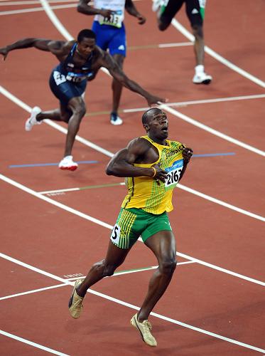 8月20日,牙買加選手博爾特(前)在沖過終點后慶祝。當(dāng)日,博爾特在北京奧運會男子200米決賽中奪得冠軍并打破世界紀(jì)錄。博爾特在8月16日舉行的男子100米決賽中奪得金牌。新華社記者陳凱攝