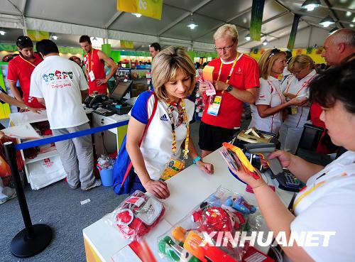 8月19日,顧客正在收銀臺結(jié)賬。 連日來,前往北京奧運村內(nèi)的北京奧運會特許商品零售店購買紀(jì)念品的顧客增多,部分已經(jīng)結(jié)束比賽的運動員臨別之前紛紛來到這里,為親朋選購具有中國特色的禮物。 新華社記者李紫恒攝