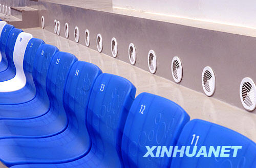 這是“水立方”內(nèi)觀眾座椅附近設(shè)計(jì)巧妙的空調(diào)通氣孔(5月16日攝)。 新華社記者王頌攝