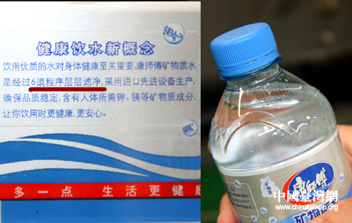 經(jīng)過這些復(fù)雜工序處理的水已經(jīng)變成了完全符合安全、健康標準的礦物質(zhì)水,即可馬上灌入另一條流水線生產(chǎn)出的瓶子中,繼而加蓋貼標封箱打檢,編碼入庫,最終進入各大超市和便利店,流入千家萬戶!澳悻F(xiàn)在可以親眼看到整個流程,就知道康師傅的礦物質(zhì)水被污蔑為自來水,是多么不負責任和可笑!眳强×仡H為無奈。