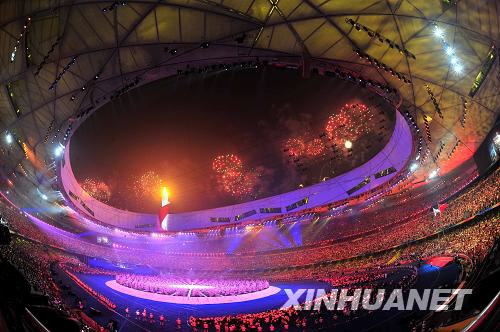 9月6日,北京2008年殘奧會(huì)開幕式在國(guó)家體育場(chǎng)“鳥巢”舉行。這是主火炬被點(diǎn)燃后的焰火表演。新華社記者廖宇杰攝