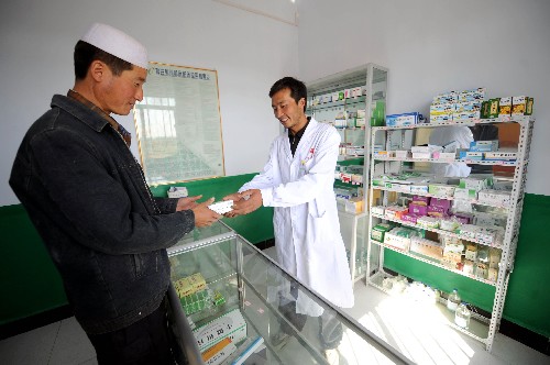 村民在寧夏海原縣西安鎮(zhèn)白吉村村衛(wèi)生室取藥(9月5日攝)。 2005年,寧夏全面啟動農(nóng)村醫(yī)療改革。短短幾年,隨著新型農(nóng)村合作醫(yī)療覆蓋所有縣市,村衛(wèi)生室升級,“零利潤”藥品進鄉(xiāng)村,村醫(yī)領(lǐng)“月薪”等一系列民生措施的實施,寧夏農(nóng)民迎來醫(yī)療保障的新時代。 新華社記者 劉泉龍 攝
