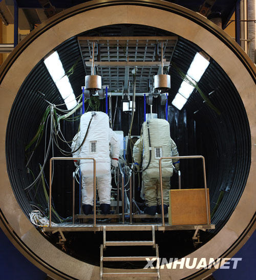 這是航天員準備進行低壓艙訓(xùn)練(資料照片)。