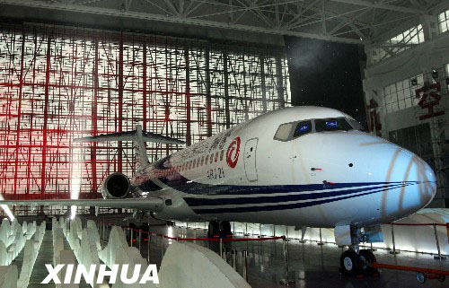 這架ARJ21-700型飛機(jī)于去年12月在上海飛機(jī)制造廠總裝下線,成為中國(guó)躋身世界民用客機(jī)行列的標(biāo)志。