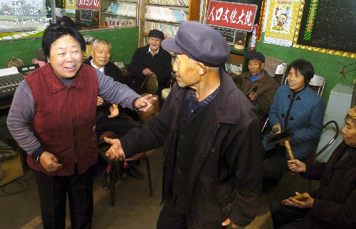文化館、圖書館等公益性文化單位不斷完善設(shè)施與服務(wù),為群眾準(zhǔn)備豐盛的活動項目;文化共享工程為農(nóng)民群眾拓寬致富路,數(shù)字化放映讓更多農(nóng)民看上好電影;自辦文化大院等群眾自發(fā)文化活動,為基層文化生活增添亮色……十六大以來,我國農(nóng)村文化生活日益豐富,農(nóng)民群眾文化權(quán)益得到保障。 這是2007年11月14日,山西祁縣城趙鎮(zhèn)里村“麻萬全文化大院”的成員正在開展活動(資料照片)。 新華社發(fā)