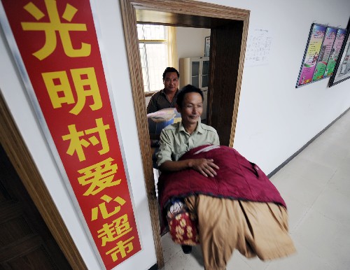 為幫助和救濟農(nóng)村困難群體,南昌市新建縣自2006年開始在全縣305個行政村陸續(xù)成立了愛心超市,提供米油、棉被、衣服等物品為困難群眾排憂解難,這些物品主要是來自上級民政部門和社會各界的自發(fā)捐贈。 這是新建縣大塘坪鄉(xiāng)光明村的“愛心超市”(10月9日攝)。 新華社發(fā)(周科攝)