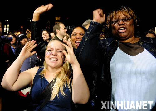 11月4日,美國(guó)民主黨總統(tǒng)候選人奧巴馬的支持者在芝加哥慶祝奧巴馬在總統(tǒng)選舉中獲勝。新華社記者張巖攝