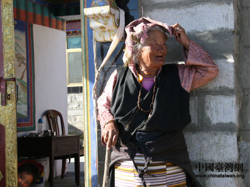 生活在小區(qū)內(nèi)安詳曬太陽的藏族阿嬤