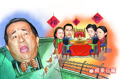 漫畫:陳水扁確定將在看守所過春節(jié),陳水扁一家難團圓。來源:臺灣《蘋果日報》