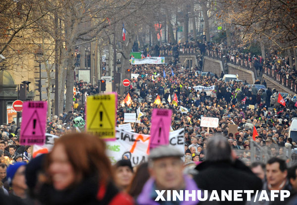 當(dāng)?shù)貢r間1月29日,法國爆發(fā)了金融危機(jī)以來模第一次大規(guī)模的罷工活動,上百萬人走上街頭,抗議薩科齊政府在處理金融危機(jī)中的無能表現(xiàn)。(中國新聞網(wǎng))