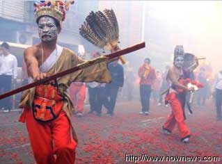 臺(tái)南鹽水蜂炮于元宵節(jié)凌晨舉行,蜂炮、煙火四竄的炮炸洗禮,每每讓參與的民眾驚叫連連,而日間的陣頭表演,包含扯鈴、宋江陣、舞龍、跳鼓、八家將等也非常精采。