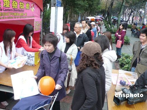 2月6日,元宵節(jié)將至,臺(tái)北市向市民免費(fèi)發(fā)放元宵節(jié)小提燈。市民只要捐兩張發(fā)票,就可獲得一組牛年小提燈,民眾踴躍領(lǐng)取,排隊(duì)長(zhǎng)達(dá)數(shù)百米。 中新社發(fā) 路梅 攝