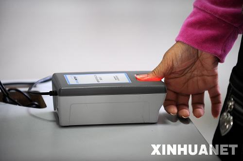 2月15日,在委內(nèi)瑞拉首都加拉加斯,一名選民在投票前驗證指紋。當日,委內(nèi)瑞拉就查韋斯總統(tǒng)提出的憲法修正案舉行全民公投。新華社/法新