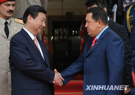 2月18日,國(guó)家副主席習(xí)近平在加拉加斯會(huì)見委內(nèi)瑞拉總統(tǒng)查韋斯。新華社記者 黃敬文攝