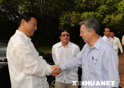 2月15日,正在哥倫比亞訪問(wèn)的國(guó)家副主席習(xí)近平在卡塔赫納會(huì)見哥倫比亞總統(tǒng)烏里韋。新華社記者馬占成攝