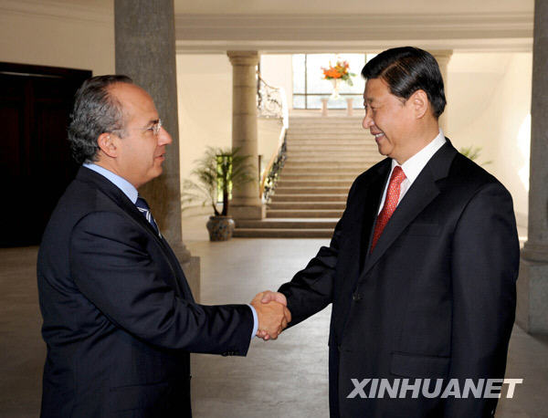 2月10日,中國(guó)國(guó)家副主席習(xí)近平在松林別墅與墨西哥總統(tǒng)卡爾德龍舉行會(huì)談。新華社記者 馬占成 攝
