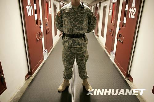 這是2007年9月4日,在古巴關(guān)塔那摩灣美國(guó)海軍基地監(jiān)獄(關(guān)塔那摩監(jiān)獄),一名美國(guó)士兵在牢房的走廊里警戒。在美國(guó),囚犯比例再創(chuàng)新高,囚犯的基本權(quán)利得不到保障。新華社發(fā)