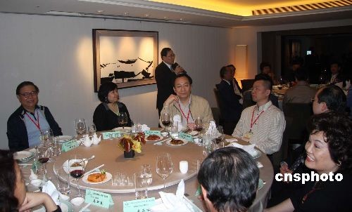 自兩岸交流以來層級(jí)最高的大陸中央媒體負(fù)責(zé)人訪問團(tuán)三月十九日晚抵達(dá)臺(tái)北。圖為臺(tái)灣中國(guó)新聞學(xué)會(huì)在臺(tái)北喜來登飯店為代表團(tuán)舉行歡迎晚宴。 中新社發(fā) 耿軍 攝