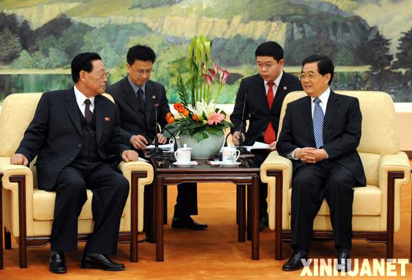 3月19日,中共中央總書記、國家主席胡錦濤在北京人民大會堂會見朝鮮總理金英日。新華社記者 馬占成 攝