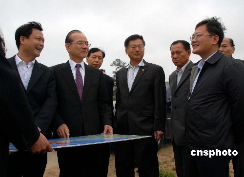 3月28日,中國國民黨副主席林豐正伉儷一行回到祖籍地福建漳浦的石榴鎮(zhèn)盤龍村祭祖、參訪。圖為林豐正(左二)參觀古雷港經(jīng)濟開發(fā)區(qū)及建設(shè)中的一德石化碼頭。 中新社發(fā) 藍(lán)智偉 攝