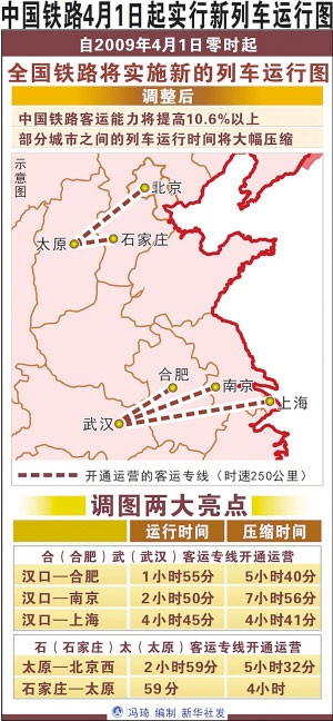 新華網(wǎng)北京4月1日電 4月1日零時起,全國鐵路開始實施新的列車運行圖。新圖實施后,全國鐵路客運列車總數(shù)達1551對,客運能力增加10.6%以上。新圖使旅客運輸能力得到提升、動車組開行范圍明顯擴大、客運產(chǎn)品結構進一步優(yōu)化、主要城市間旅客列車運行時間大幅壓縮、運輸效率得到新的提高。