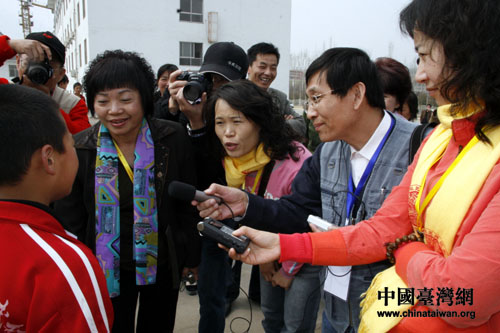 聯(lián)合采訪(fǎng)河南的兩岸媒體在嵩山少林寺參訪(fǎng),巧遇在此地武術(shù)學(xué)校習(xí)武的臺(tái)灣小朋友。(鐘寶華 攝)