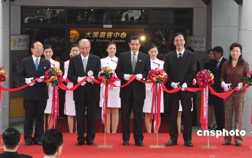 馬英九在剪彩儀式上發(fā)表演講。來(lái)源:中新社