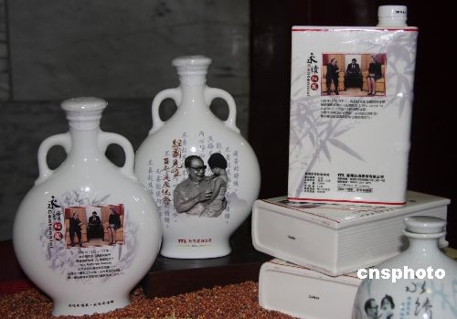 臺(tái)灣煙酒公司配合推出3款蔣經(jīng)國(guó)百年誕辰紀(jì)念酒。圖為其中一款仿古的白磁提耳瓶,在臺(tái)灣陶瓷重鎮(zhèn)鶯歌訂作陶瓷瓶身,裝入臺(tái)灣原窖高梁酒,一面印有1986年馬英九擔(dān)任翻譯時(shí),和經(jīng)國(guó)先生的合照。酒瓶的另一面印有蔣經(jīng)國(guó)先生抱著小女孩的合照,表現(xiàn)蔣經(jīng)國(guó)先生的親民形象!《全文》