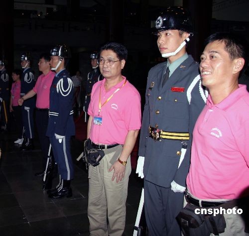 大陸居民赴臺旅游及兩岸周末包機7月4日成行。七百多人的首發(fā)團抵臺后,多個團甫抵臺北,首站即參訪臺北孫逸仙紀念館。為迎接大陸觀光客來臺,紀念館方面破例允許大陸觀光客可以近身和館內衛(wèi)兵合影。 中新社發(fā) 徐長安 攝