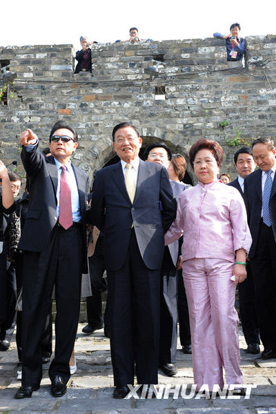 4月25日,臺灣;鶗(huì)董事長江丙坤和夫人在海協(xié)會(huì)會(huì)長陳云林陪同下參觀南京明城墻。新華社記者韓瑜慶攝
