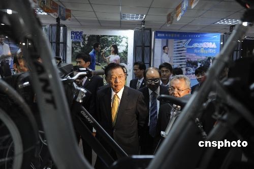 四月二十八日,;鶗麻L江丙坤一行參觀江蘇昆山臺資企業(yè)——捷安特自行車(中國)有限公司。 中新社發(fā) 廖攀 攝