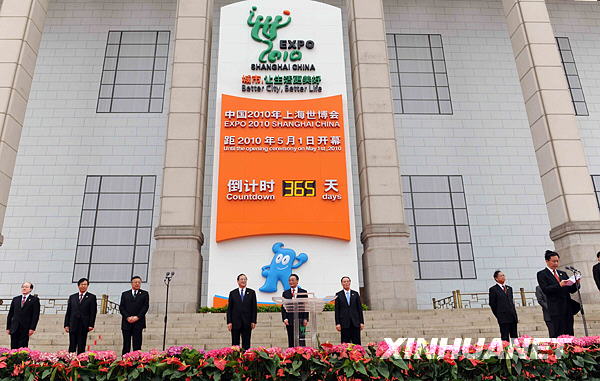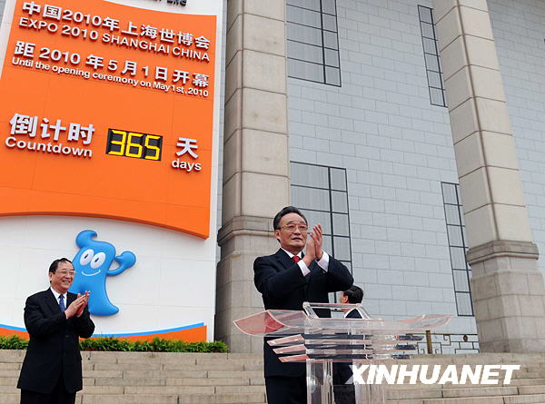 5月1日,2010年上海世博會(huì)倒計(jì)時(shí)一周年暨計(jì)時(shí)牌啟動(dòng)儀式在北京天安門廣場舉行。中共中央政治局常委、全國人大常委會(huì)委員長吳邦國出席儀式。新華社記者 李濤 攝