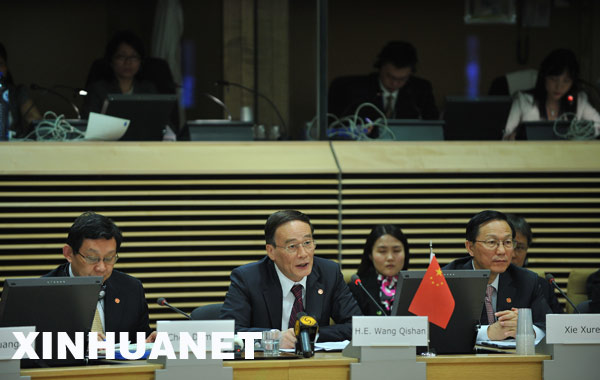 中國國務(wù)院副總理王岐山和歐盟委員會負(fù)責(zé)貿(mào)易事務(wù)的委員凱瑟琳·阿什頓共同主持了對話。王岐山說,成功舉辦此次中歐經(jīng)貿(mào)高層對話對于應(yīng)對國際金融危機(jī)挑戰(zhàn)、促進(jìn)中歐之間的合作具有重要意義,并為即將舉行的第十一次中歐領(lǐng)導(dǎo)人會晤做了良好鋪墊。