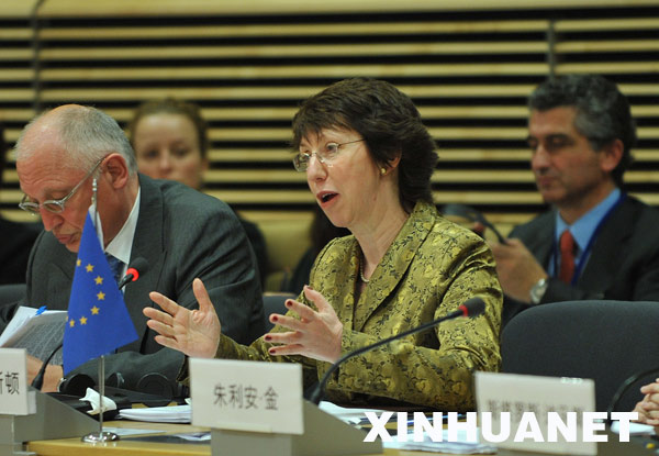 5月7日,在位于比利時首都布魯塞爾的歐盟總部,歐委會貿(mào)易委員阿什頓在當(dāng)天開幕的第二次中歐經(jīng)貿(mào)高層對話會上發(fā)言。新華社記者武巍攝