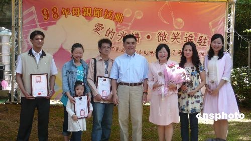 中新社臺(tái)北五月九日電(記者 鄧敏 耿軍)母親節(jié)前夕,臺(tái)北市“愛的光譜,微笑進(jìn)駐”母愛影像征文比賽頒獎(jiǎng)典禮五月九日在市長(zhǎng)官邸藝文沙龍舉行,臺(tái)北市市長(zhǎng)郝龍斌為得獎(jiǎng)的六位選手頒獎(jiǎng),并在現(xiàn)場(chǎng)分享了自己與母親的親情故事。