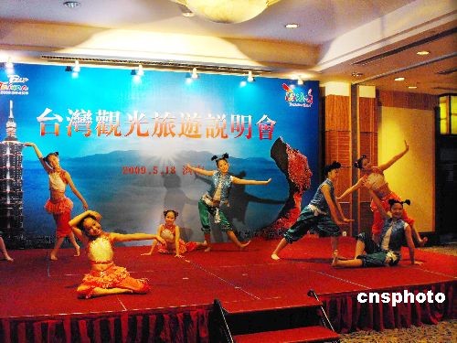 推介說明會上,來自臺灣“蘭陽舞蹈團(tuán)”的中小學(xué)生還為與會者表演了極富臺灣民間色彩的舞蹈“偶戲”,并播放了臺灣風(fēng)光宣傳片。