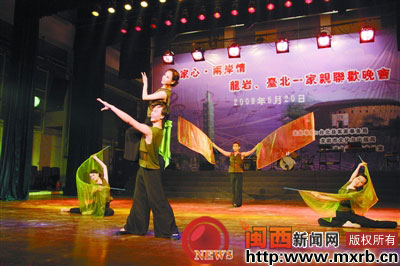 5月20日晚,由臺(tái)北縣客家事務(wù)局,龍巖市文化與出版局、臺(tái)辦聯(lián)合主辦的“2009客家心·兩岸情——龍巖臺(tái)北一家親”海峽兩岸客家文藝交流聯(lián)歡晚會(huì)在龍巖藝典演劇院舉行。