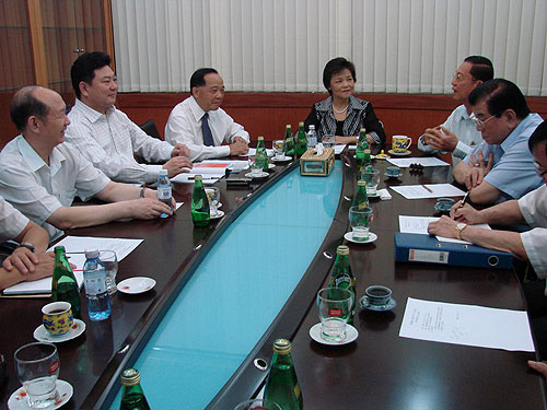 柬埔寨中國促統(tǒng)會代表正在聽取高華副會長報(bào)告。坐者中為張金鳳大使。(圖:柬埔寨星洲日報(bào))