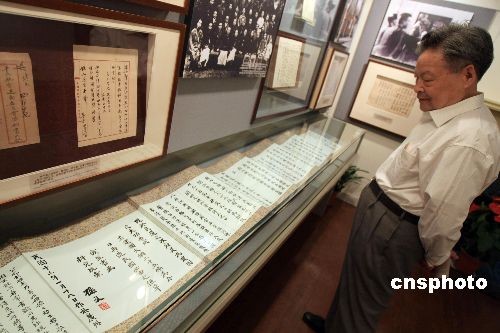 上海孫中山故居紀(jì)念館與中國國民黨黨史館首次聯(lián)合舉辦的《永恒的豐碑——紀(jì)念孫中山先生文物文獻展》昨日正式啟幕,剛跟隨國民黨主席吳伯雄到南京晉謁中山陵的中國國民黨副秘書長張榮恭趕來出席。