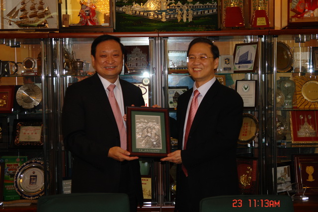 王國(guó)強(qiáng)向考察團(tuán)贈(zèng)送紀(jì)念品