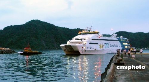 新華社臺(tái)北7月7日電 臺(tái)灣郵輪“海洋拉拉號(hào)”7日9時(shí)搭載310多位浙江臺(tái)州各界人士由臺(tái)州玉環(huán)縣大麥嶼港直航臺(tái)灣,19時(shí)許抵達(dá)宜蘭蘇澳港。這是兩會(huì)簽署相關(guān)協(xié)議后浙臺(tái)海上客運(yùn)的首航。