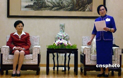 八日下午,參加“第二屆兩岸四地女企業(yè)家經(jīng)貿(mào)論壇”的全國(guó)婦聯(lián)代表團(tuán)甫抵臺(tái)北,黃晴宜一行即前往臺(tái)灣中華婦聯(lián)總會(huì)位于青島西路的會(huì)址,拜會(huì)辜嚴(yán)倬云女士。