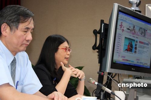 7月9日,臺灣“陸委會”正式啟用“關(guān)懷大陸配偶”網(wǎng)站專區(qū),希望向社會傳遞“牽手”精神,進(jìn)一步服務(wù)有大陸配偶的26萬個臺灣家庭。圖為“陸委會”主委賴幸媛(右),與副主委兼發(fā)言人劉德勛一起出席當(dāng)日下午的記者會。 中新社發(fā) 董會峰 攝