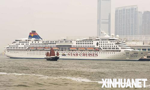 8月2日,搭載內(nèi)地旅行團(tuán)赴臺(tái)灣旅游的麗星郵輪“寶瓶星號(hào)”停泊在香港維多利亞港。新華社記者 呂小煒 攝